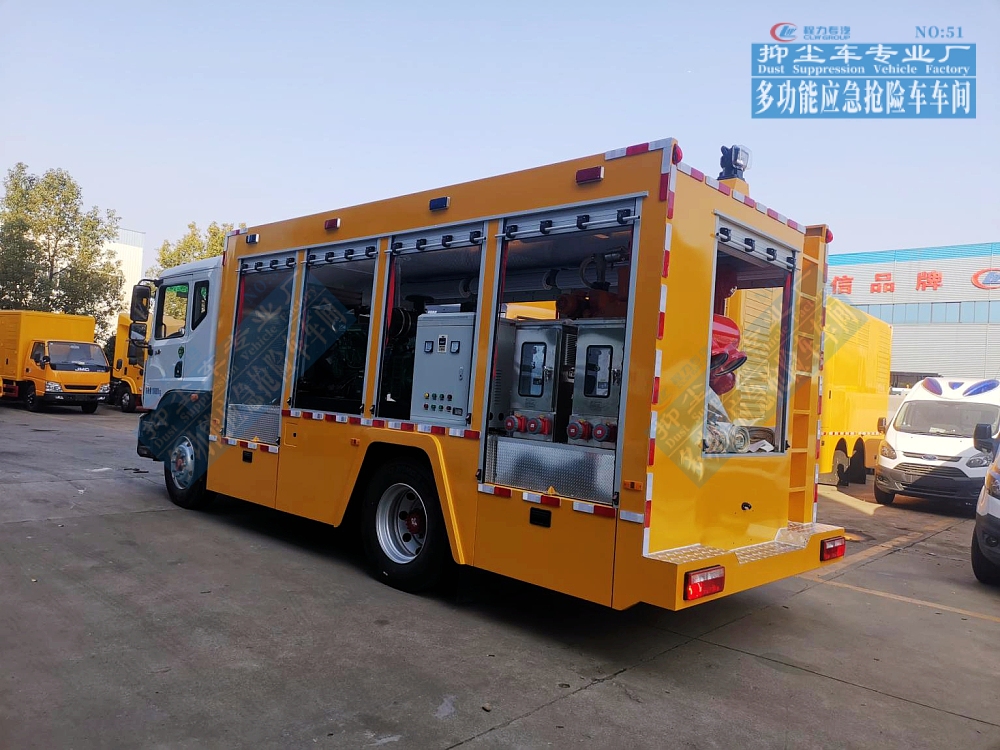 救险车厢体外部钢材为优质冷轧钢板,内衬优质冷轧钢板折弯骨架,配备多个高端铝合金卷帘门,工艺**,强度牢固。厢体为全密封结构,具备运输、防雨、防腐、防火、防锈要求。车厢内顶分布多个照明灯,给夜间工作或维修作业时提供充分光线。发电机组进排风消声处理,消声器做降噪处理。工作门下裙围处设有隐藏式翻转梯,与车厢底板框架连接,方便拿取物品。
